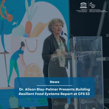 View the webcast from the morning session of day 3 here. Listen to interventions from stakeholders and policymakers at CFS 53 on enhancing the resilience of food systems. Dr. Alison Blay-Palmer’s full presentation begins at 2:11:00 for Dr. Blay-Palmer’s presentation.